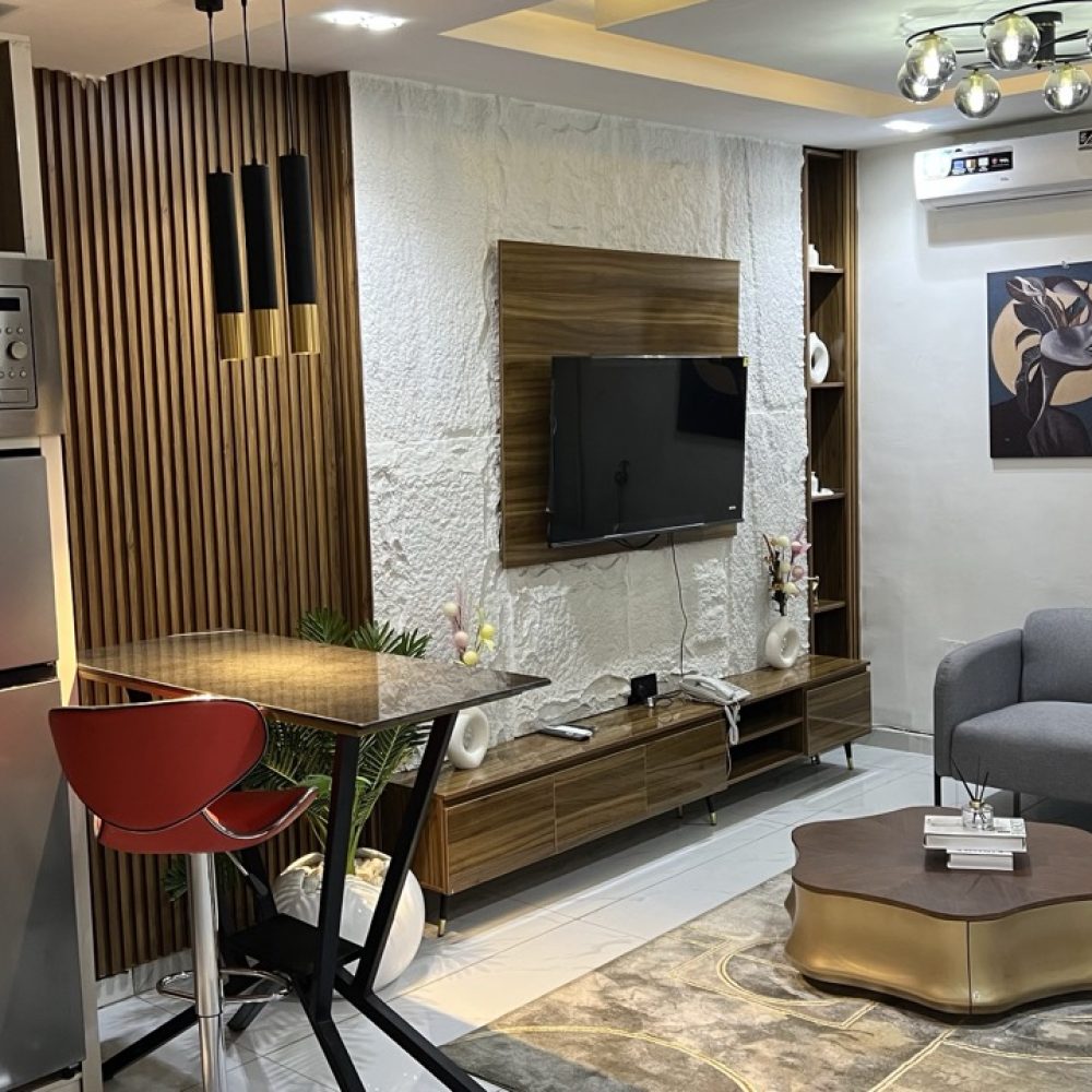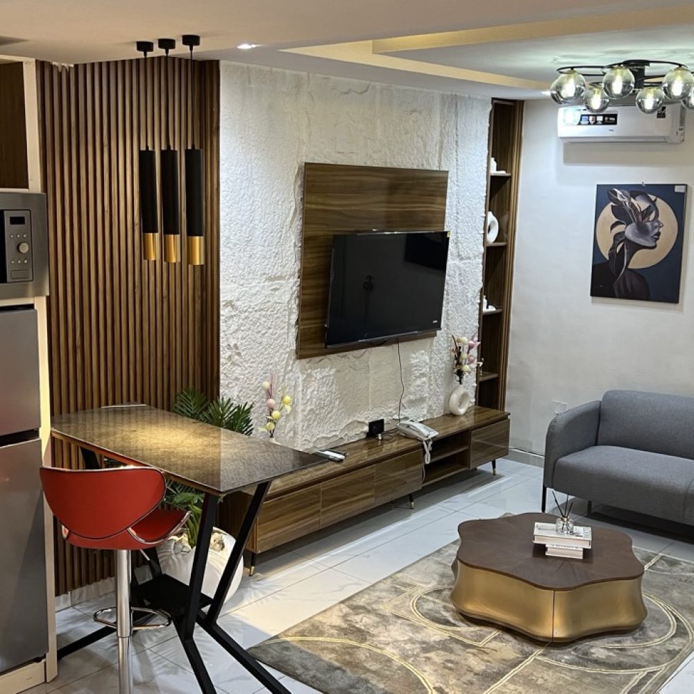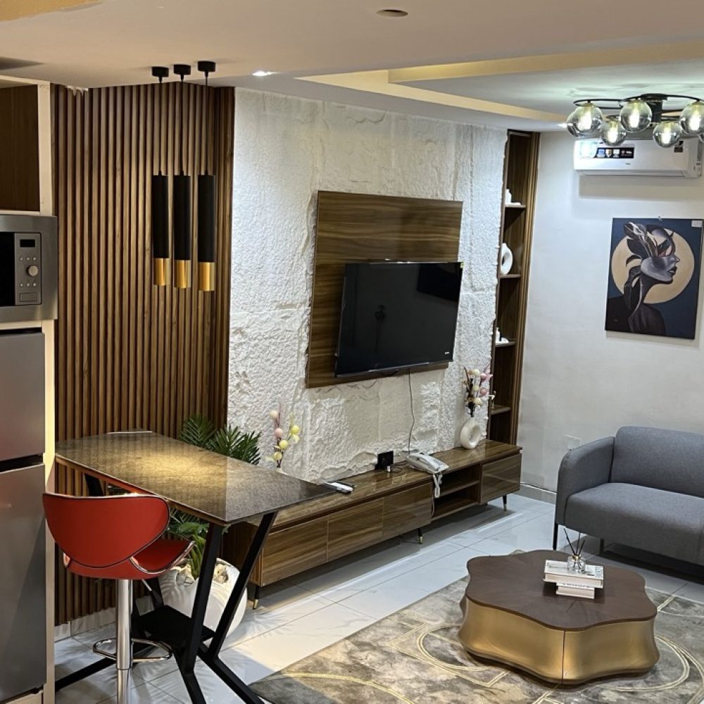 The interior showcases beautiful furniture, elegant finishes, and a carefully curated modern design that creates a warm yet luxurious environment. Guests are welcomed into a private living room with stylish seating, perfect for relaxation, private conversations, or hosting visitors in comfort.